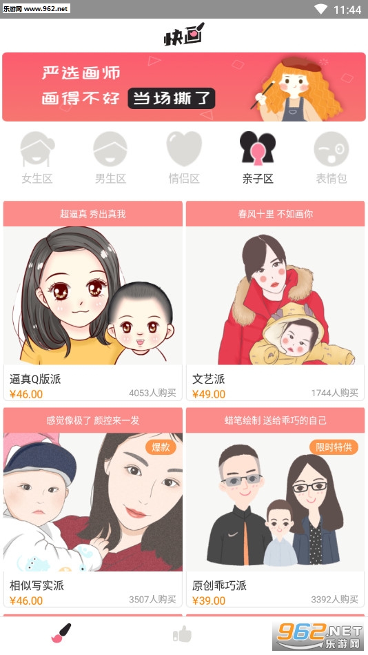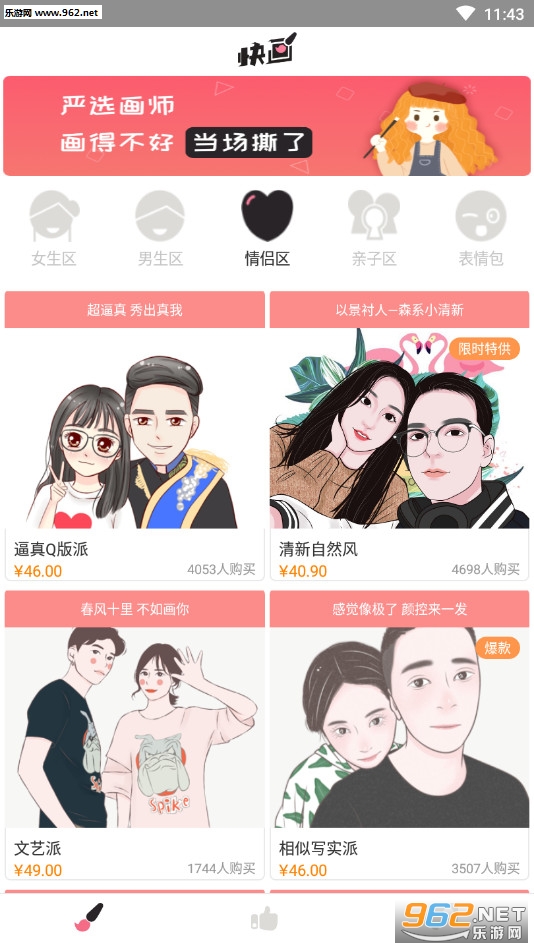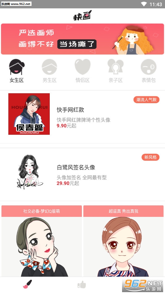 《手绘头像设计安卓版》是一款为朋友们打造的头像定制软件,手绘头像设计app中有着众多设计好的头像供大家选择,有着女生、男生、情侣、亲子等不同的类型,当然如果都不满意还可以自己提出自己的想法进行定制。