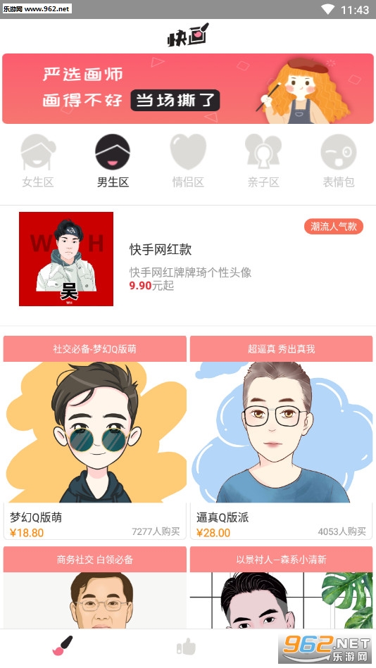 软件有用众多的手绘头像可以欣赏,也可以自定义设计,当然这些都不是免费的,而且还有点小贵,有需要的朋友可以下载试试。