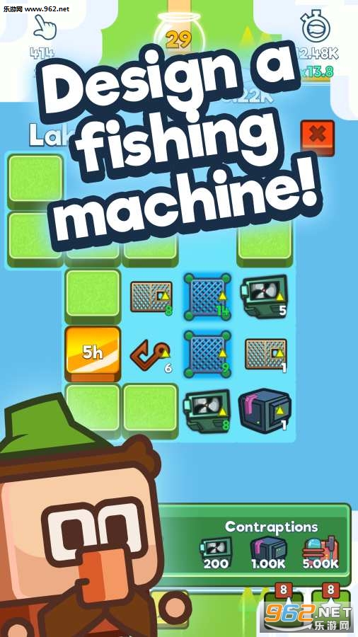 游戏的操作上手后非常的简单,游戏中需要操控一位钓鱼人,这个钓鱼人也是可以进行选择的。游戏是全触屏操作,屏幕上会出现不同的操作按钮。