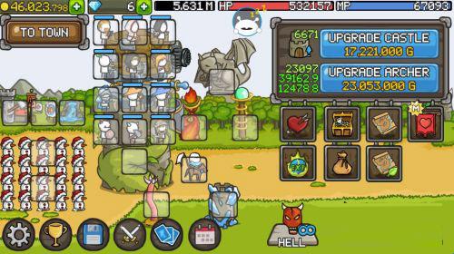 2、升级城堡:在前期升级城堡是非常必要的,升级城堡可以提高城堡的生命和可用法力值,还可以增加防守点。前期升到6个防守点就可以比较轻松地应对进攻。