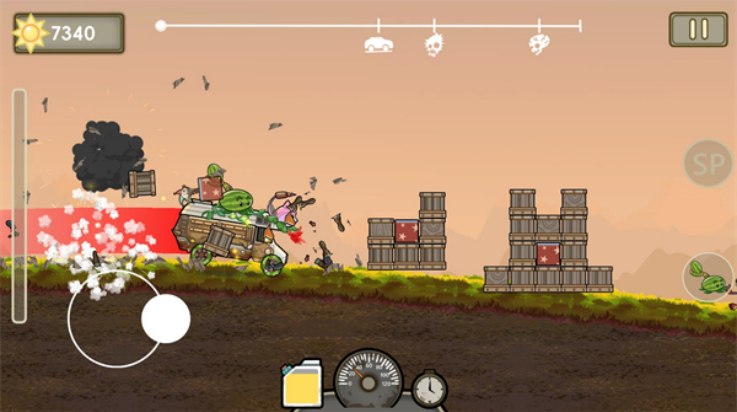 4、正式开始后左边控制车辆的点击后退,右边是使用车辆的改装配件进行攻击。