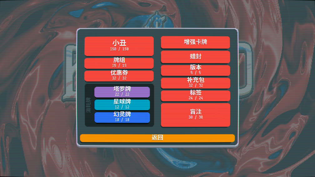 6.除了常规的标准游戏牌以外,还有小丑牌、塔罗牌、幻灵牌等卡牌来提供增益,进而能更好更快更多地获得码。每局游戏结束后,玩家可以在商店中购买随机刷出的小丑牌、塔罗牌、星球牌、幻灵牌、优惠券,以及各种卡包。