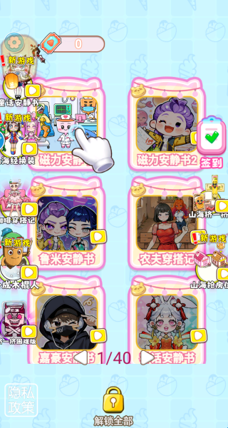 1、进入游戏后,你可以看到有很多玩法,嘉豪安静书、路米安静书和农夫穿搭记等。