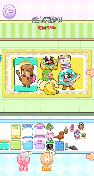 2、我选的是第一种安静书,时间有限,你要将下放的物品进行合理的搭配和装扮。