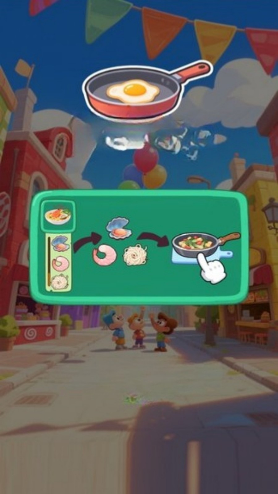1、游戏画面采用3D动画风格。玩家在玩的时候可以体验休闲娱乐的氛围,享受烹饪带来的乐趣操作。