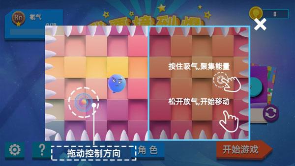 2、基础操作:左侧遥感,通过都拖动控制方向,右侧长按吸气,聚集能量,松开放气移动。