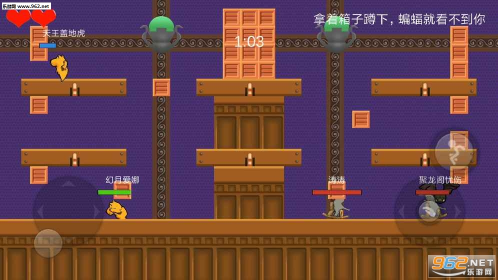 《狗熊毛驴大乱斗》是以我们小时候在FC上玩过的一款经典游戏为原型制作的游戏。游戏目前暂时只有2v2,玩家通过捡起箱子并抛向其他队伍的玩家来攻击其他玩家从而获得胜利,而箱子不仅可以攻击对手,还可以躲进箱子内可以防御其他玩家的一次攻击、躲避中立怪物的追踪,另外还可以传给队友等等。
