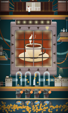 玩家戳屏幕来观赏工人们运转机器:用滑轮抬起眼皮,撑大瞳孔让光照进来;