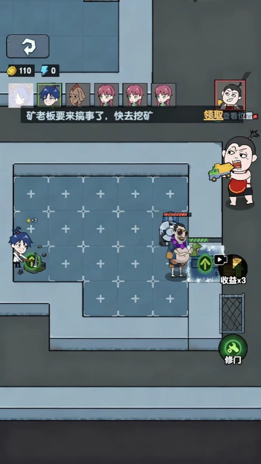 2、每一次的挖掘都是会有着金币的奖励的,然后可以使用金币去升级我们的门