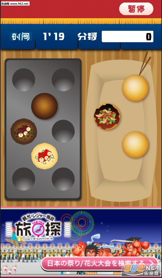 《章鱼丸子匠人之战中文汉化版》是一款模拟制作章鱼小丸子的休闲手游,游戏中玩家有一台自己的章鱼丸子机,你需要在规定的时间内烤熟他们交给顾客来获取分数,如果烤焦了或者你数错了还会被扣分哦。玩法非常轻松,可以用来打发时间,感兴趣的话不妨下载试玩一下!