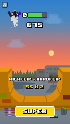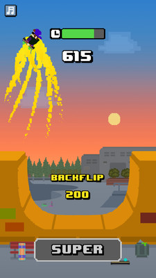 《像素滑板少年安卓版》是一款十分好玩有趣的像素风休闲娱乐动作闯关类游戏。游戏的玩法非常的简单,在游戏中玩家需要扮演一位滑板少年,你需要在一个凹形的场地中进行滑板特技表演,每一次的点击都将完成不同的动作,你需要在规定的时间内尽可能的拿到高分。喜欢这款游戏的小伙伴儿赶快来下载吧!