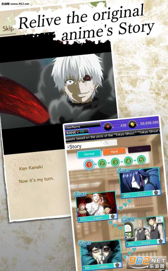 东京喰种:重生是一款根据日本动画《TOKYO GHOUL》全新改编的手游新作!游戏主打经典的策略回合制玩法模式,玩家可以自由收集和培育你的英雄伙伴,一路征讨未知的副本地图,同时迎战强大的精英BOSS,夺取你的胜利荣耀!