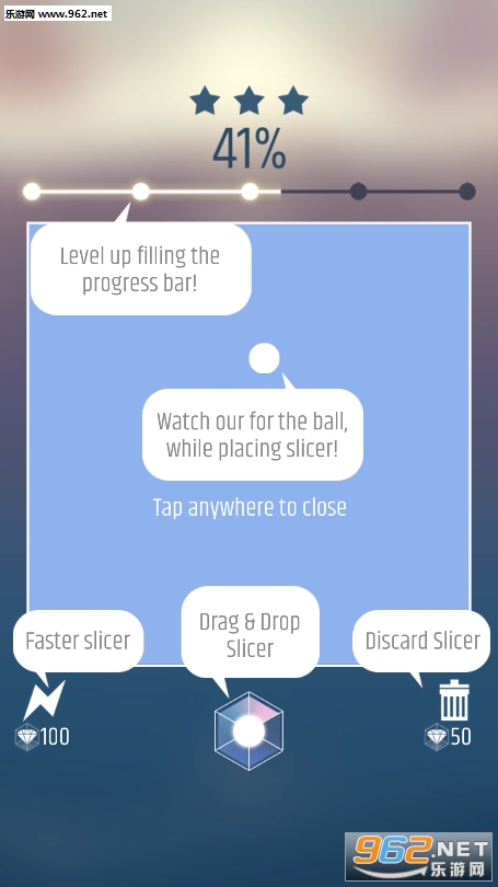 游戏非常的自由并且容易上瘾,它有独特的游戏玩法,包括切片机和球,有各种游戏模式。真正的脑筋急转弯和超级有趣!如何玩?很容易。你所要做的就是放置切片机来切割和收缩木板。你需要有战略眼光,迅速做出正确的决定。如果你在切球之前触球,比赛就结束了。
