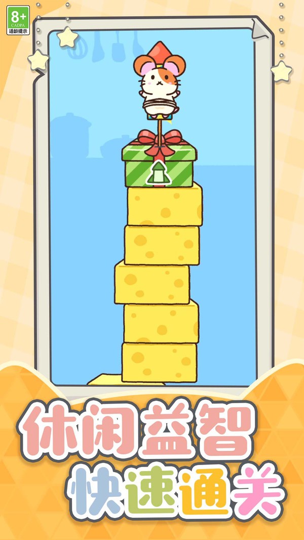 超能萌宠大作战的主角是一只非常可爱的小老鼠,玩家们需要根据不同关卡的玩法规则来帮助小老鼠不断的收集食物,并通过事物的累计来进行堆叠,到达一定的高度之后就算通关成功,游戏玩法轻松简单,你可以任意选择自己想要的食材,并控制小老鼠不断进行跳跃动作,后期关卡难度逐渐上升,看看你最终可以获取多少分数!