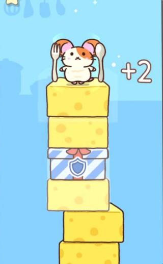 2、多人协作堆叠,好友各控一只鼠鼠轮流跳跃,配合失误会导致食物堆晃动。