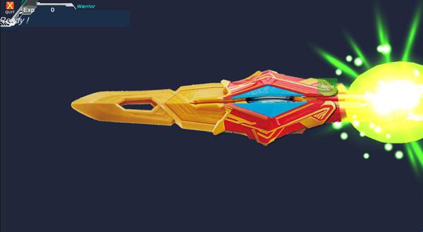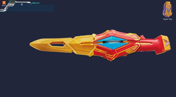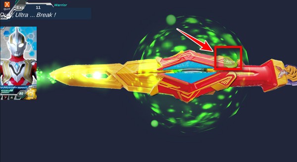 刷卡读取特利迦空中型的奥特次元卡牌之后,剑身上聚集大量的兰帕尔特能量,以自身为轴心高速旋转并对敌人进行猛烈的连环斩击!