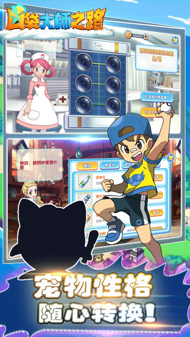 口袋大师基于地理位置(LBS)的超强交互性手游,基于真实位置抓宠、交友,千里姻缘一线牵!100%真实位置地图数据扫描,多种地标各色精灵,极具天朝 特色,主线副本全国漫游,亲临各省收集精灵特产。专属天赋、个性化养成华丽变身,数千阵容随心组建,更有萌萌哒精灵独有装备带你飞,速速带上萌宠,开启最强训练师的奇幻之旅吧。