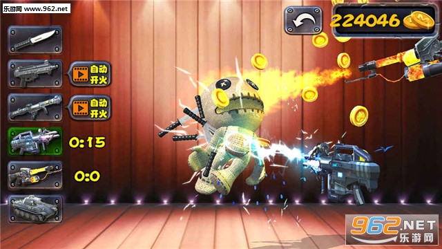 任务极度简单,动动手指,用各种武器打击木偶人就可以赚取金币。