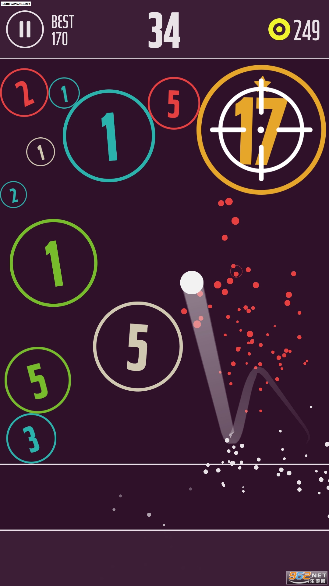 挺好玩的一款休闲弹球类游戏,玩法简单,挺容易上手的,越到后面积累的球球数量越多就会越难,玩家想要获得高分可没有想象中的那么容易!
