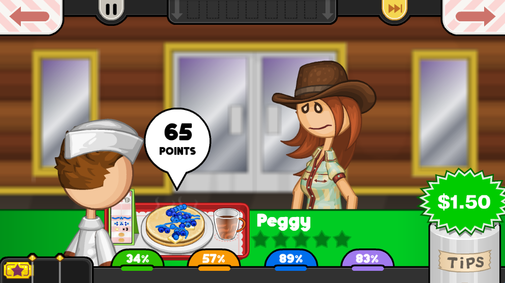10、递给顾客,顾客会依据菜品进行打分。分数的高低决定了玩家获得小费的多少。