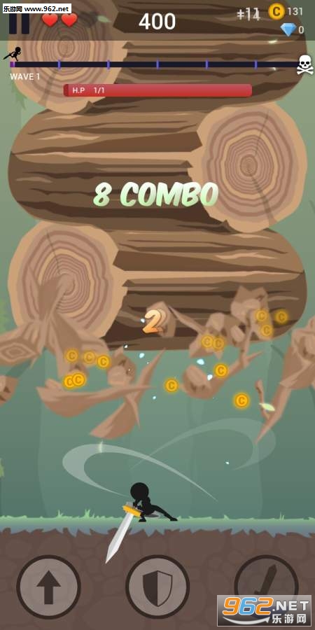 非常好玩的一款休闲动作点击游戏,游戏的玩法非常的简单,清爽的火柴人的画风,在游戏中玩家只需要操作你的火柴人进行跳跃和点击来挥砍从上方坠落的物体,同时可以不断的进行连点的操作哦,整个的过程非常的劲爆,绝对可以帮你打发无聊的时间。