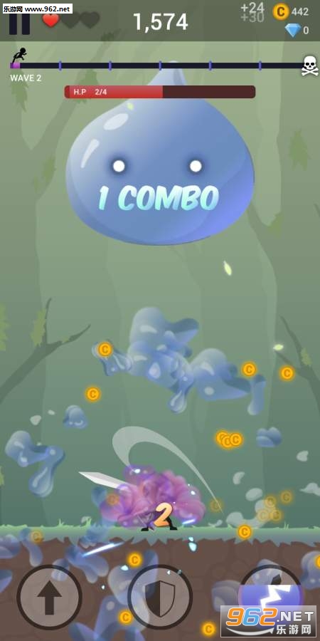 1、四个动作:跳跃、普通斩击、大力挥刀斩,以及释放护盾。