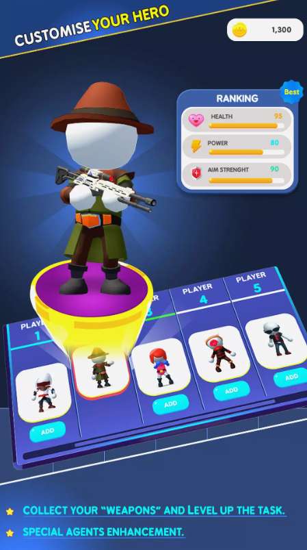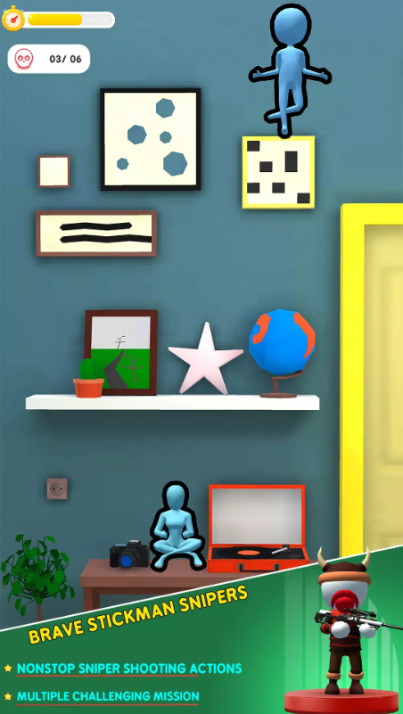 刺客狙击手是一款橡皮人射击类小游戏,内置关卡丰富,根据每局对战规则,在规定区域内寻找线索,根据现场遗留的线索找到隐藏的目标即可通关!每完成一关都可以获取丰厚的奖励,可以用来解锁高阶武器、以及个性化皮肤喔!游戏玩法简单易上手,感兴趣的玩家们快来下载试试吧!