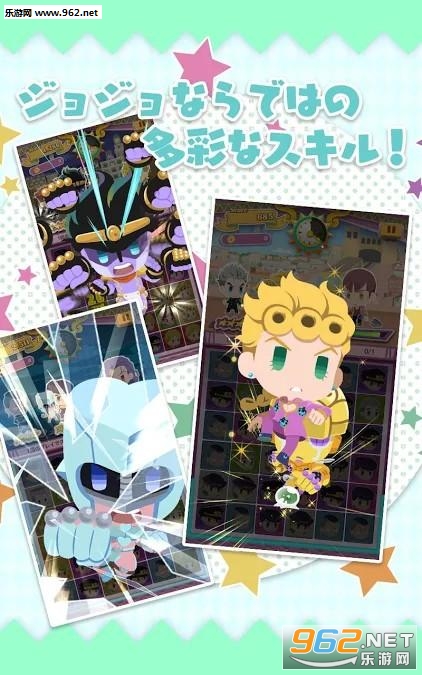 《JoJo的咇哒啪哒碰官方版》是一款非常好玩的卡通Q版风格消除战斗类游戏,游戏以动漫《JoJo的奇妙冒险》为素材,融入了消除闯关和动作战斗的玩法,玩家在游戏中需要通过消除来收集动漫中的角色,积累能量与敌人之间战斗!