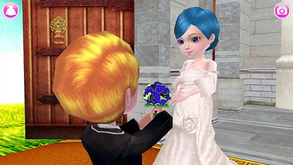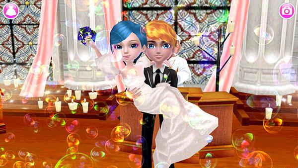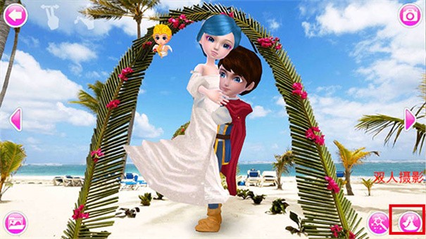 1、装扮完后可以点击风景拍照,右下角的魔法棒可以让可可新娘做出很多pose!