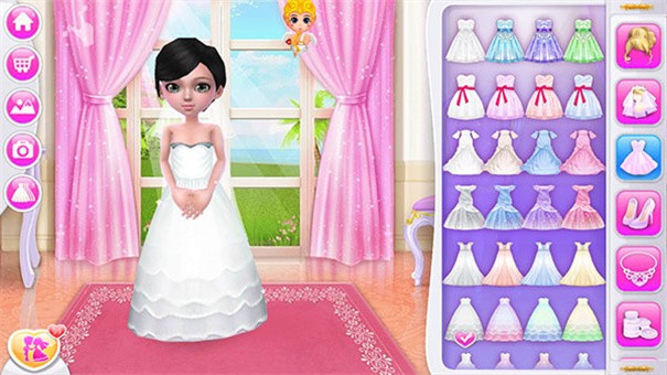 2、右侧是各种发型、精致的头饰、唯美的婚纱等个性妆容打扮,是要打扮清纯的、美艳动人的、豪华宫廷的可可都由你来决定,甚至丘比特小爱神都可以按自己喜好来选择。