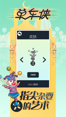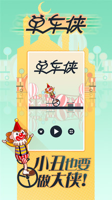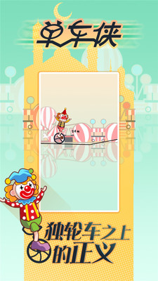 《单车侠安卓版》这是一款画风简约的休闲街机手游。玩家扮演杂技团小丑,需要驾驶独轮车,通过点击左右侧保持平衡,尽可能行驶出更远的距离,而且还可以解锁不同的时装。游戏上手容易,感兴趣的玩家可以下载体验!