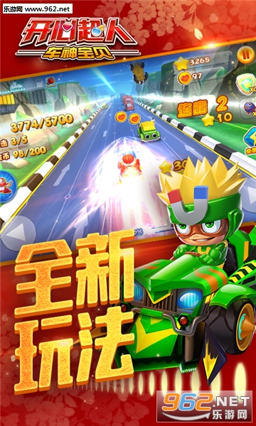 1、化身勇敢的开心超人和他的小伙伴们,驾驶着酷炫的赛车在赛道上与对手一较高低!
