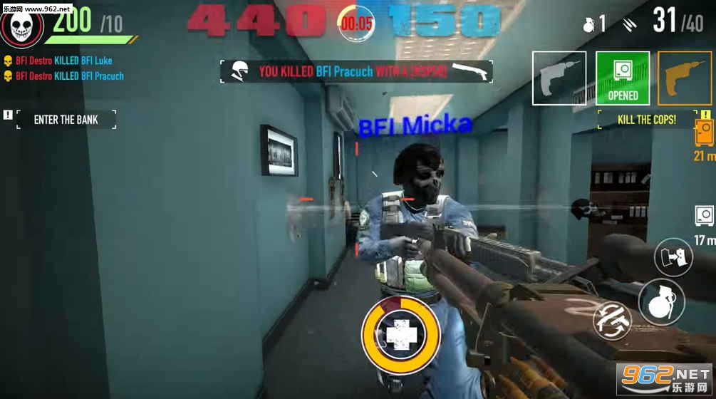 非常不错的3DFPS游戏,游戏有着两种不同的阵营可以选择,玩家可以扮演罪犯去抢劫银行等,也可以扮演警察去阻止罪犯的犯罪行为,真实射击模拟,喜欢的朋友可以下载试试。