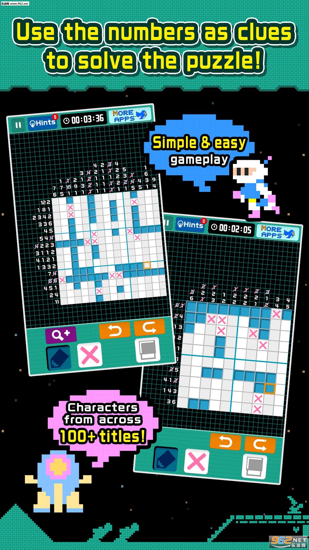 解决难题并收集您最喜欢的角色的有趣像素艺术!