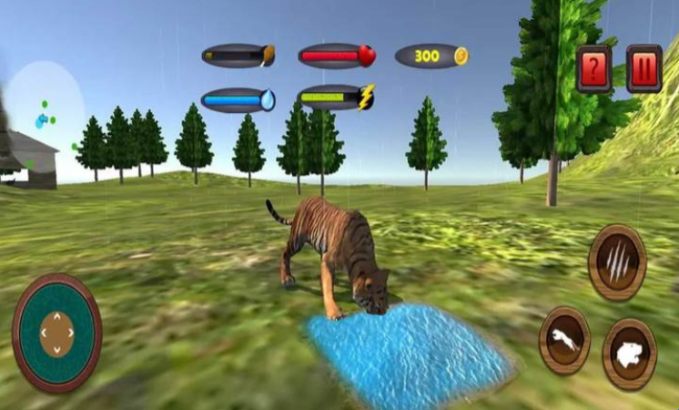 1、游戏当中我们玩家将会化身为一只凶猛霸气的老虎,游戏当中主要捕食各种各样的野生动物来活下去;