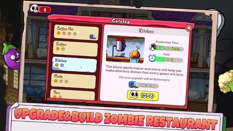 僵尸烹饪冲刺游戏Zombie Cooking Dash是一款以僵尸为主题的趣味经营类小游戏,玩家们经营着一家末日餐厅,根据每一位顾客需求制作美食,获取僵尸顾客好感度可以解锁丰厚的奖励,同时还有跑酷新模式,金币奖励可以用来获取更多食材喔!