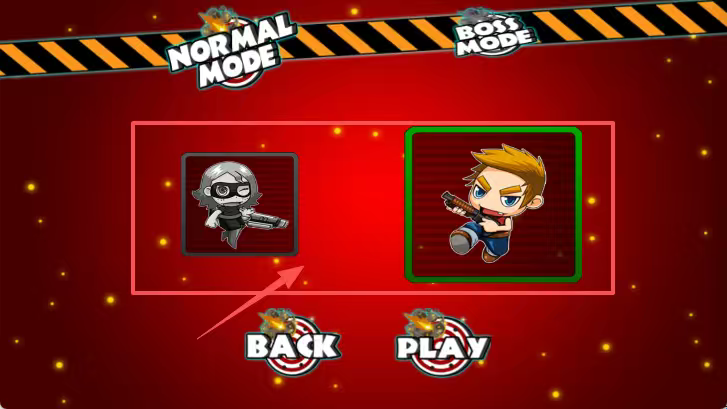 2、在游戏选择界面,左右有两个角色,选那个被绿色框框住的金发角色,点下方PLAY按钮开始,也能点BACK回到上一界面。