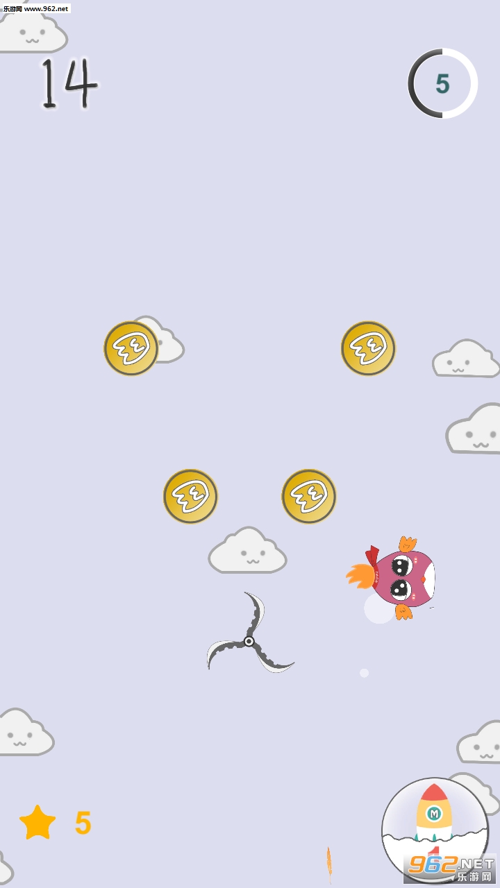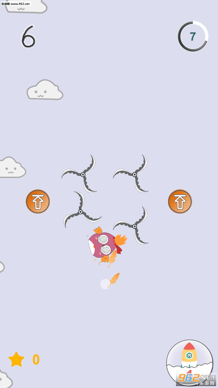 玩家在游戏中只需要用手在屏幕上面不断地点击就可以让角色一直不断地往上升,在上升的时候有时还会有一些障碍物来妨碍,玩家只要利用不同的上升速度来平衡这些障碍物,寻找到它们的规律就很好通过了。