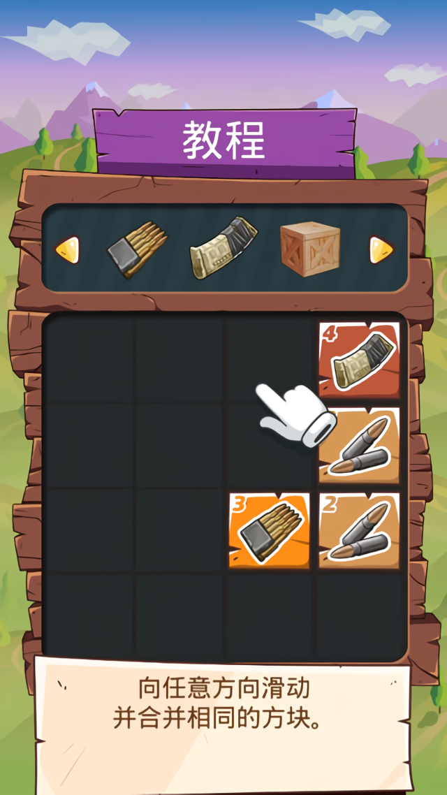 1、(向上、向下、向左、向右)滑动以移动方块。