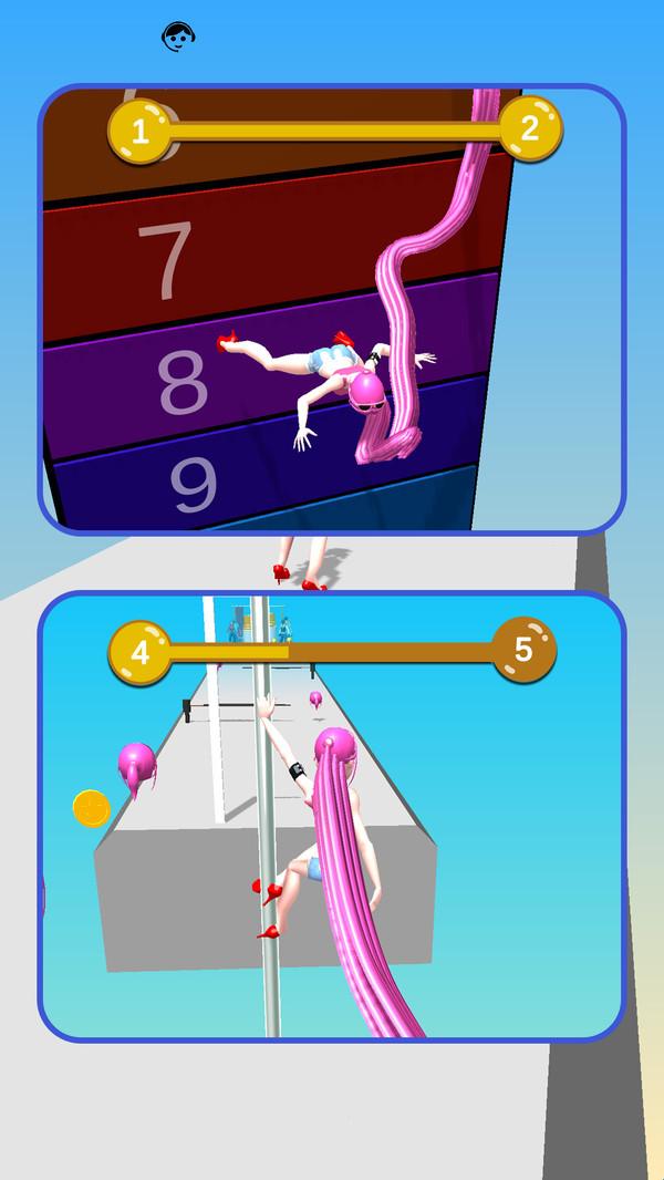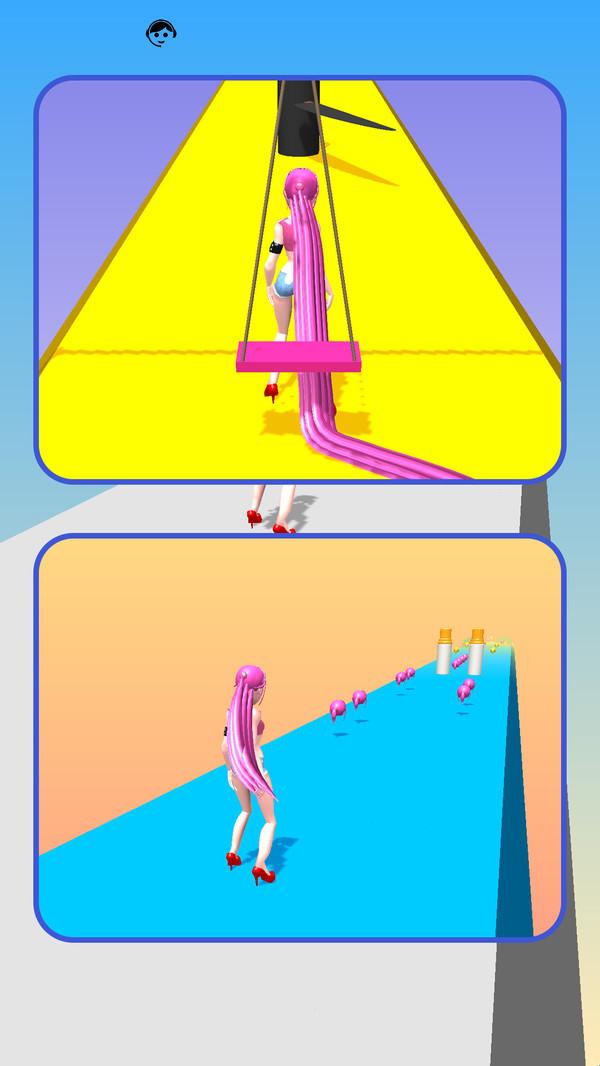 3、成功避开障碍并收集到足够的头发后,在舞台上展示了美丽的长发发型。