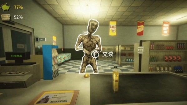 恐怖超市模拟器游戏中玩家们将全程第一人称视角来开启这次冒险!根据游戏文字提示做任务,在货架前观察收集线索,同时警惕周围变化,接待到访顾客,与顾客对话时辨别是否为伪人,及时做好策略部署,保护好其它顾客的安全!