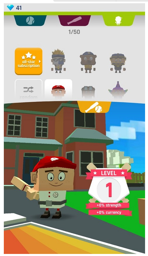 4、爱好收集的玩家,可以在顶部的“棒与球”图标中解锁全新的棒球皮肤,还有数十种不同人物皮肤可以选择。