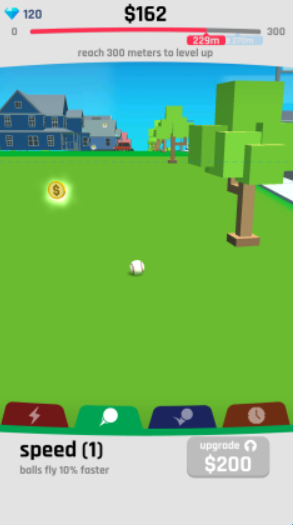 2、具体操作只需点击屏幕即可开始,击球后的距离会有统计,依据统计的结果基于玩家金币奖励。