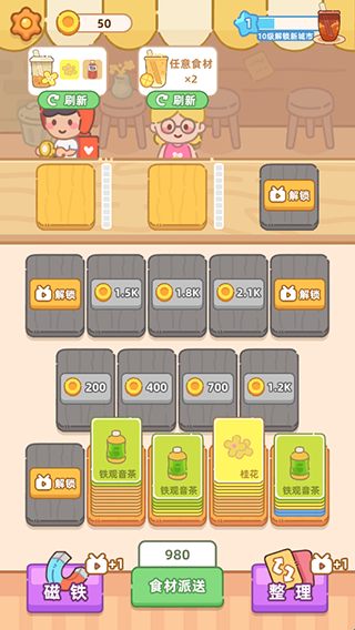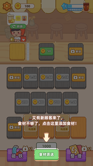 1、通过满足各种订单需求,来解锁更多食材和奶茶款式,打造梦想中的奶茶铺!