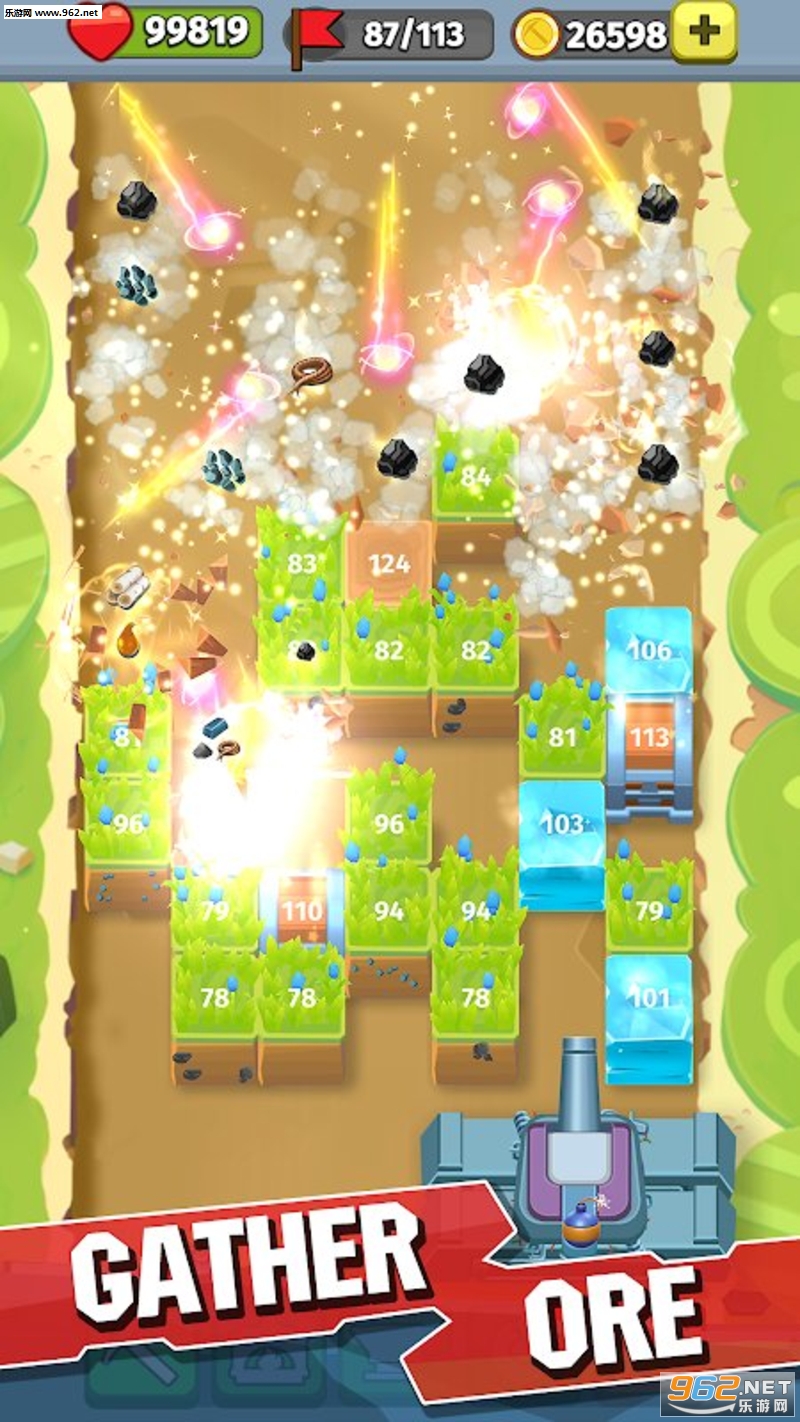 非常好玩的一款采矿游戏,游戏的玩法非常的简单,玩家通过采矿枪射击的方式去击打关卡中不同的矿物,根据方块上的数字的大小去进行击打的次数,即可获得这些稀有的矿产。