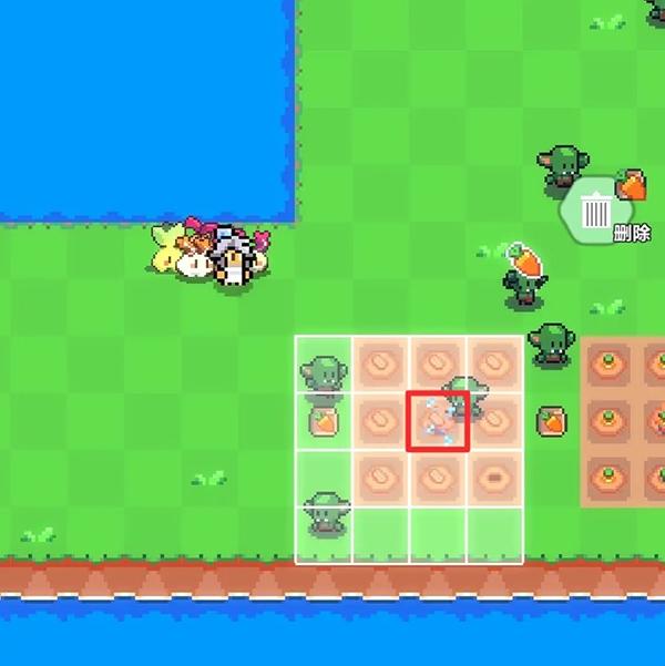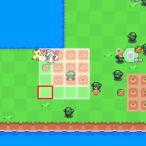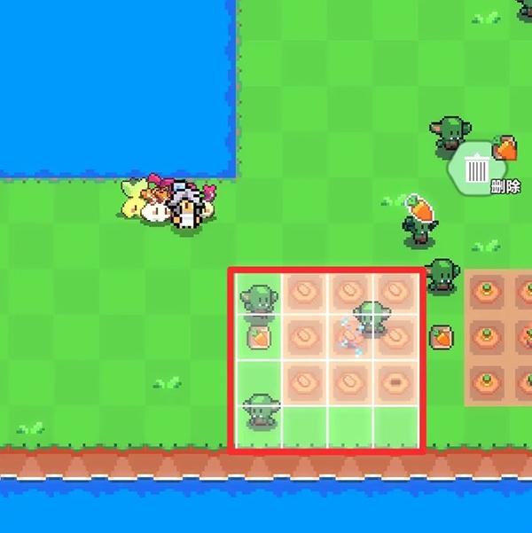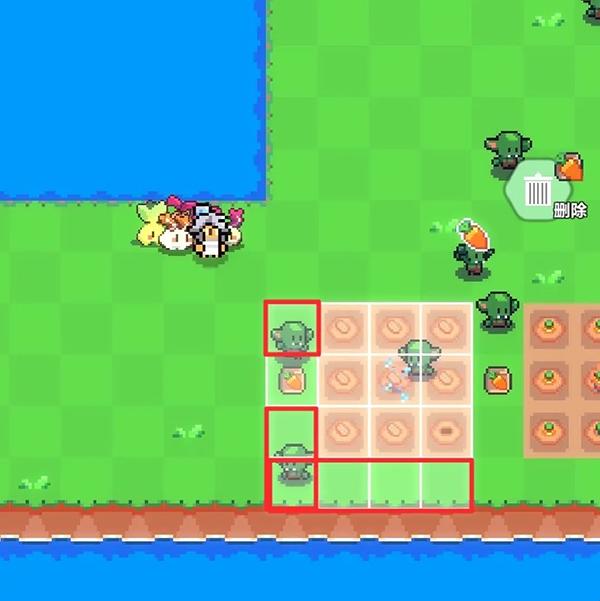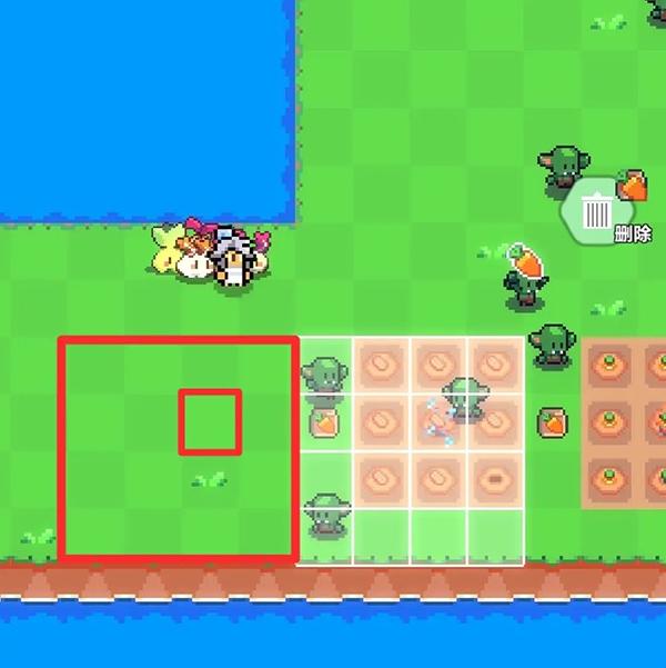 5、假设我们要将农作物移动到图中红色大方块区域,则洒水器应该处于红色小方块区域。