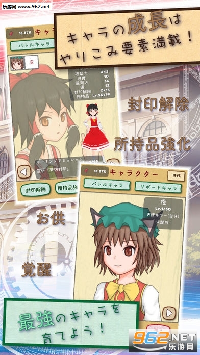 一款好玩的放置类RPG游戏,游戏本身来说并没有非常多的出彩点,整体的玩法中规中矩,精美的3D画面制作的效果和令人激动的CV的语音才是本作最吸引人的地方,同样也是东方迷和广大动漫迷们最喜爱的部分。