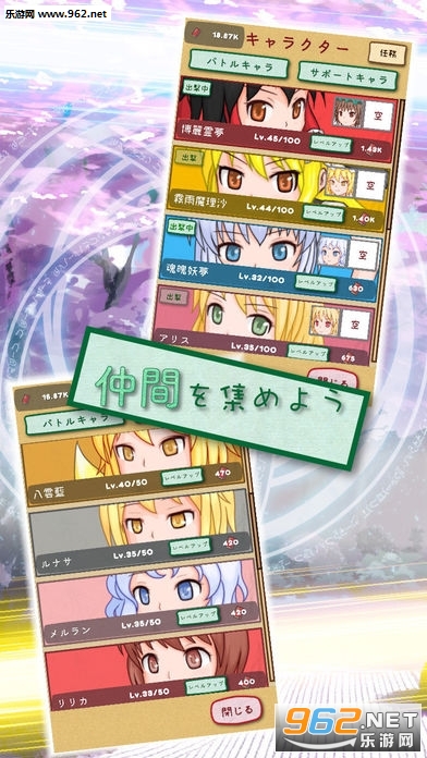 3、喜欢东方系列的玩法一定不要错过,你可以选择不同的角色,以简单的放置玩法进行战斗。