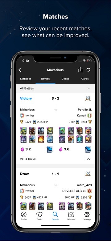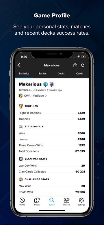 在任何游戏模式下,用你使用过的所有甲板看你的获胜率。(只要你经常更新你的个人资料!)