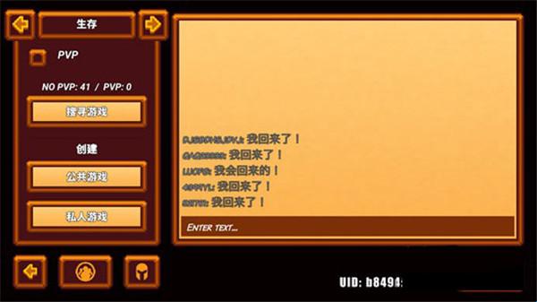 5、选择好自己的存档后,就会进入多人联机菜单,在这里我们可以点击左上角的箭头来选择不同的模式,包括生存模式、PVP竞技场模式、竞技场模式、地牢模式等。